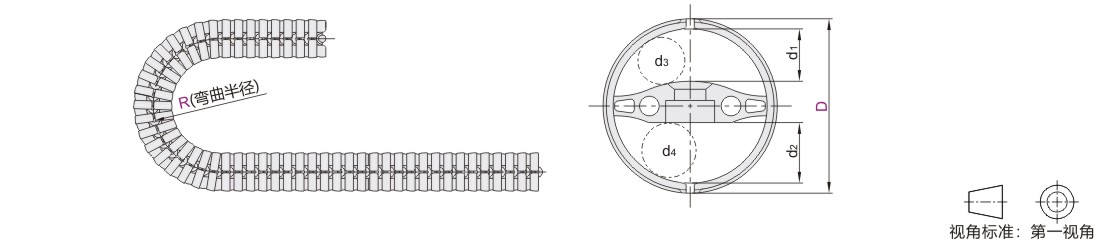 特点:适用于机器人,自动化设备、机床等多维运动电缆保护场合,