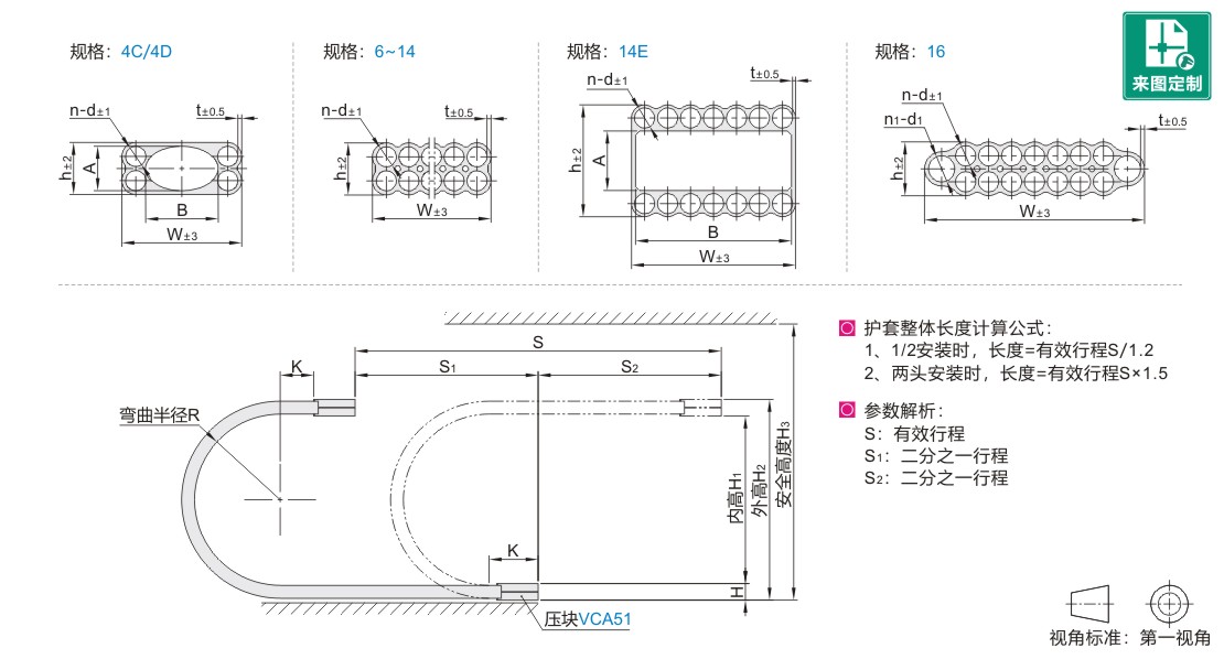 ● 排管式硅胶无尘护套是一体成型,选型时尽量一条线走一个孔;