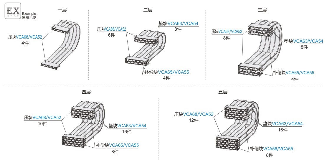 如需VCA62(改性尼龙(白色)垫块、VCA64(改性尼龙(白色)补偿块,请另行购买。