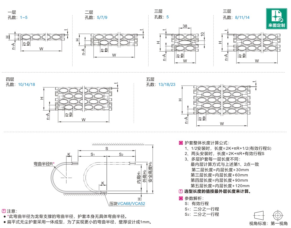 *此弯曲半径为龙骨支撑的弯曲半径,护套本身无具体弯曲半径。