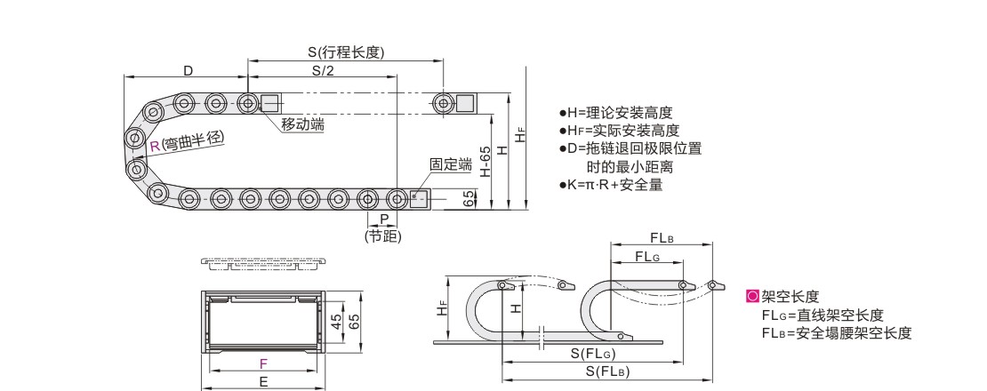 本系列拖链标准型号包含一套接头(移动端、固定端各一个)。