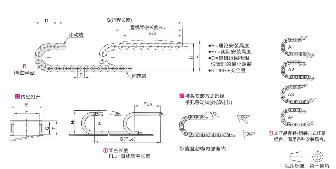 本系列拖链标准型号包含一套接头(移动端、固定端各一个)。