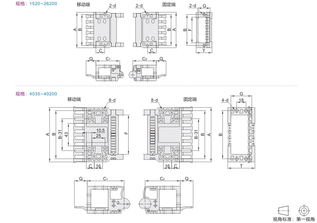 | 型号 | A | B | C | C1 | C2 | Q | F | G | T | d | |