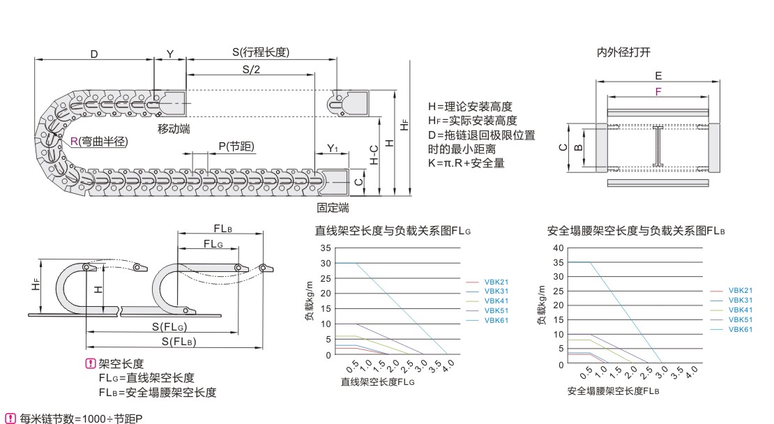 如果是首次选用,则有可能拖链长度不够,建议多选1、2节做备用,安装时再进行拆卸调整。
