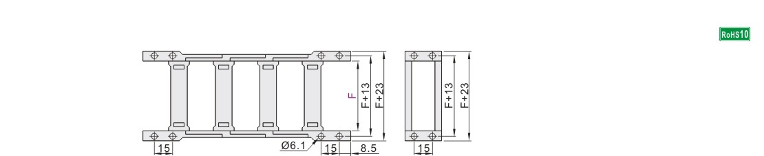 | 代码 | 适用拖链内宽F | ||||||||||||||||||||