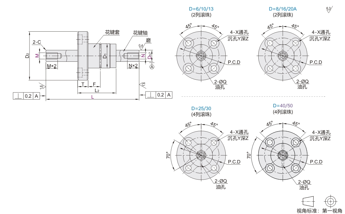 实心滚珠花键 两端内螺纹型 圆法兰螺帽型 标准型 经济型 轴公差h7