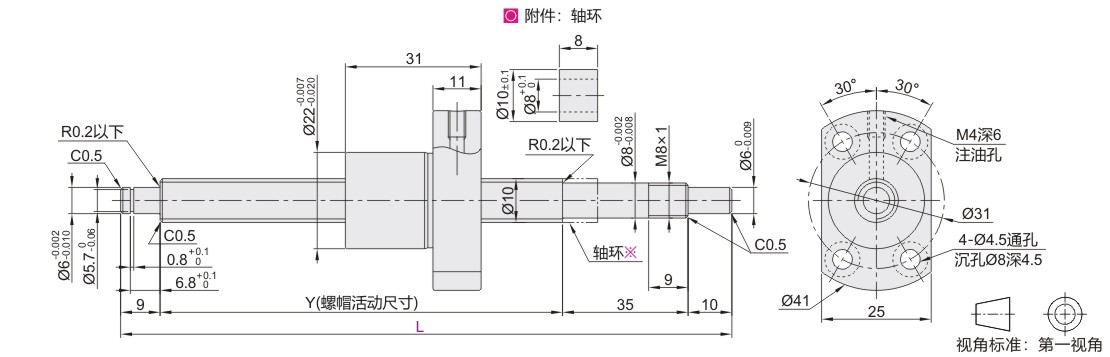 Y | 滚珠直径 | 丝杠底径 | 螺纹旋向 | 螺母 环圈数 |