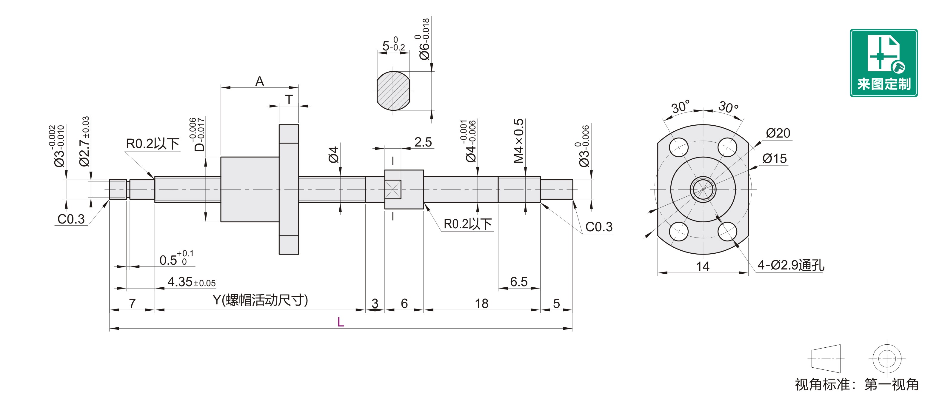 压轧滚珠丝杠 标准螺帽型 轴径4 导程1 精度C7