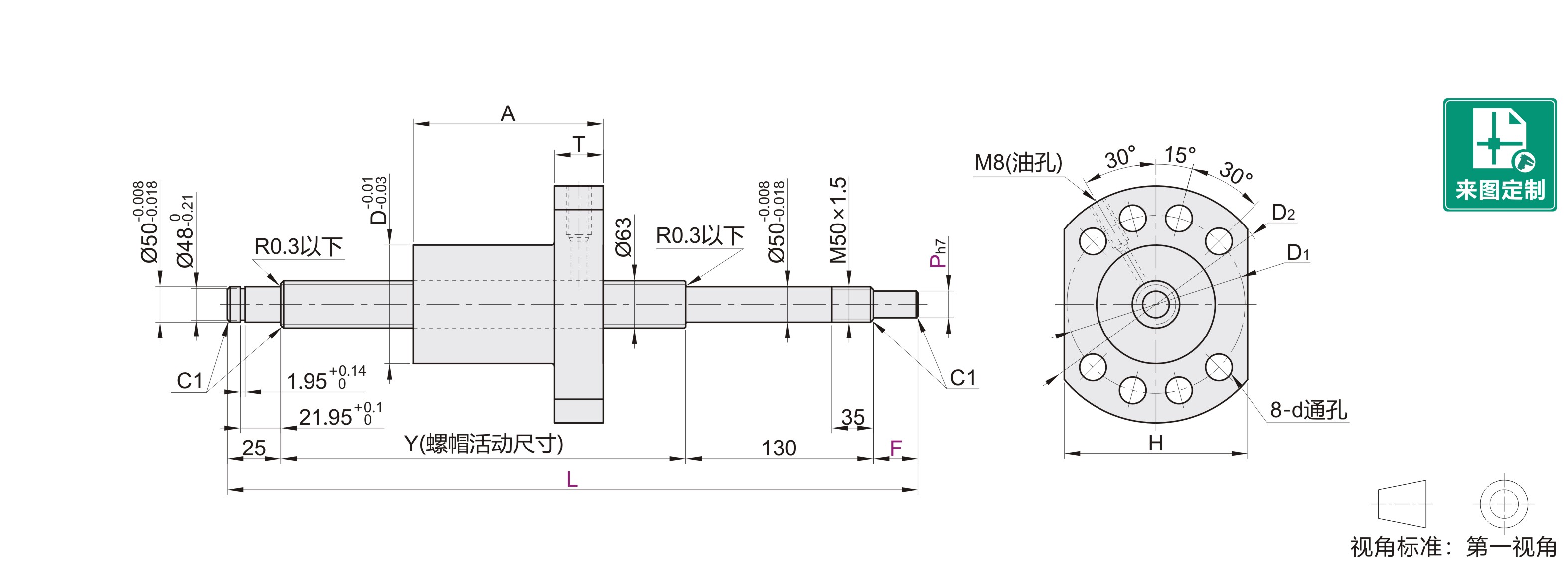 压轧滚珠丝杠 标准螺帽型 轴径63 导程10/20 精度C7