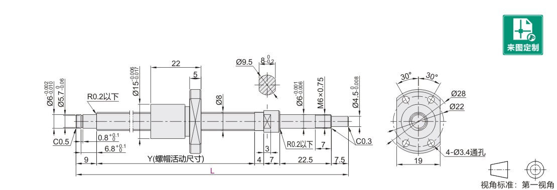 滚珠丝杠 轴端尺寸固定型 轴径8·导程2