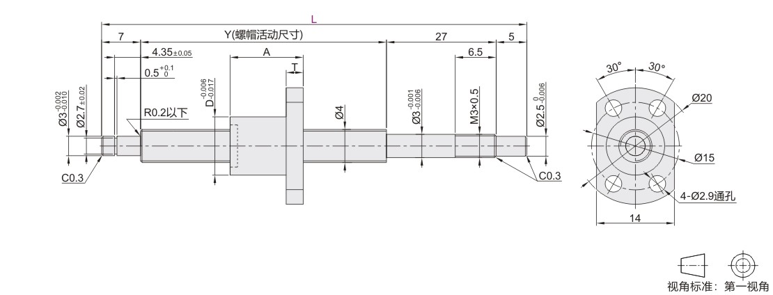 研磨滚珠丝杠 标准螺帽型 轴径4 导程1 精度C3/C5