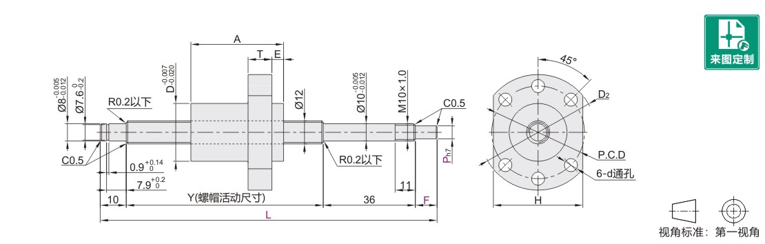 | 代码 | 丝杠轴径 | 导程 | L | F | P | C(动)kN | Co(静)kN | ||||||||||||||||||||||||||