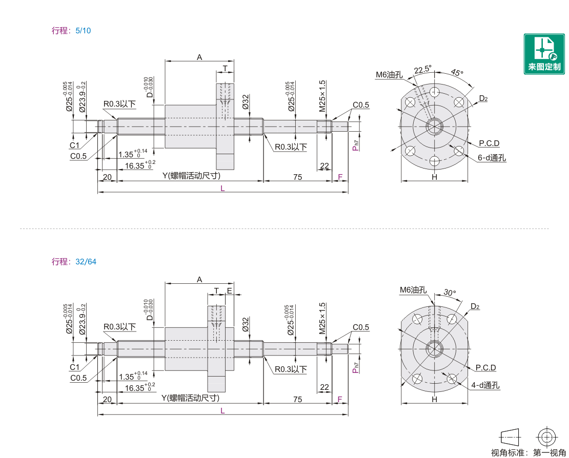 研磨滚珠丝杠 标准螺帽型 轴径32 导程5/10/32/64 精度C5