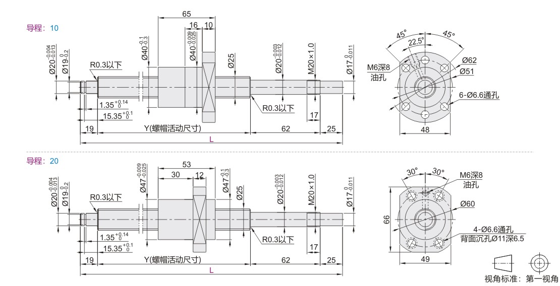 研磨滚珠丝杠 标准螺帽型 轴径25•导程10/20