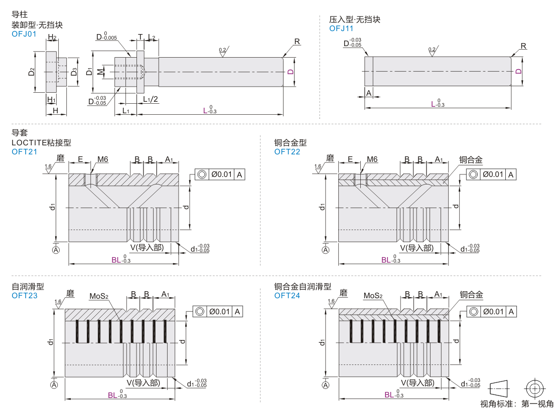 | OFH85 | 压入型 | OFJ11 | OFT21 | SUJ2 | 58HRC~ | — | 润滑脂油嘴 BLE11-6A |