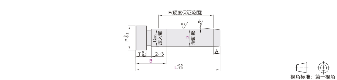 F为高频淬火硬度保证范围,F=L-T-A-(10 ~ 15),淬火深度参考值:1.5~2.0mm。