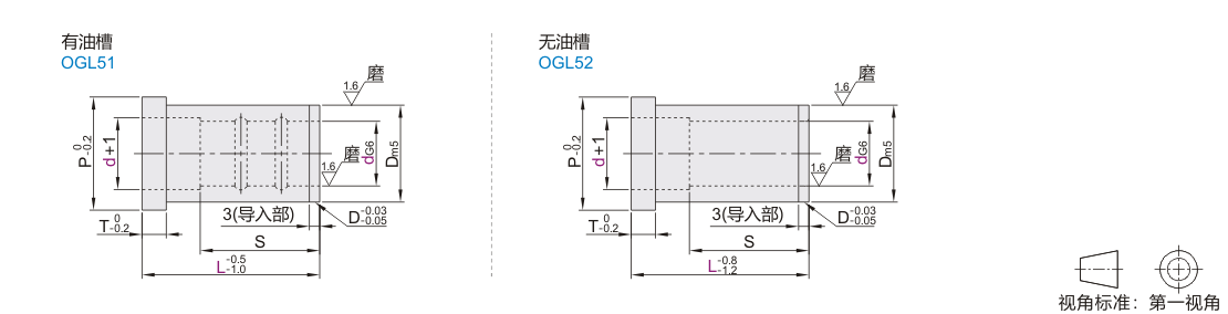 无油槽导套与带油槽导柱/支撑柱( OGL04/05/ 15/34)搭配使用。