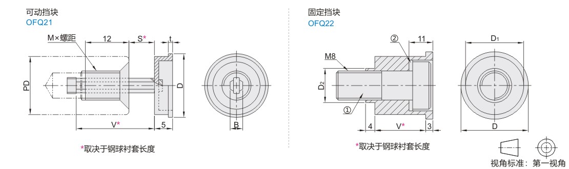 | OFQ22 | 固定挡块 | — | ①螺钉 ②弹簧垫圈 | ||