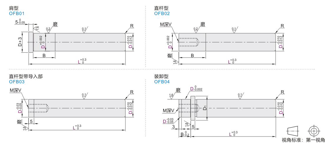 | 肩型 OFB01 直杆型 OFB02 直杆型带导入部 OFB03 |