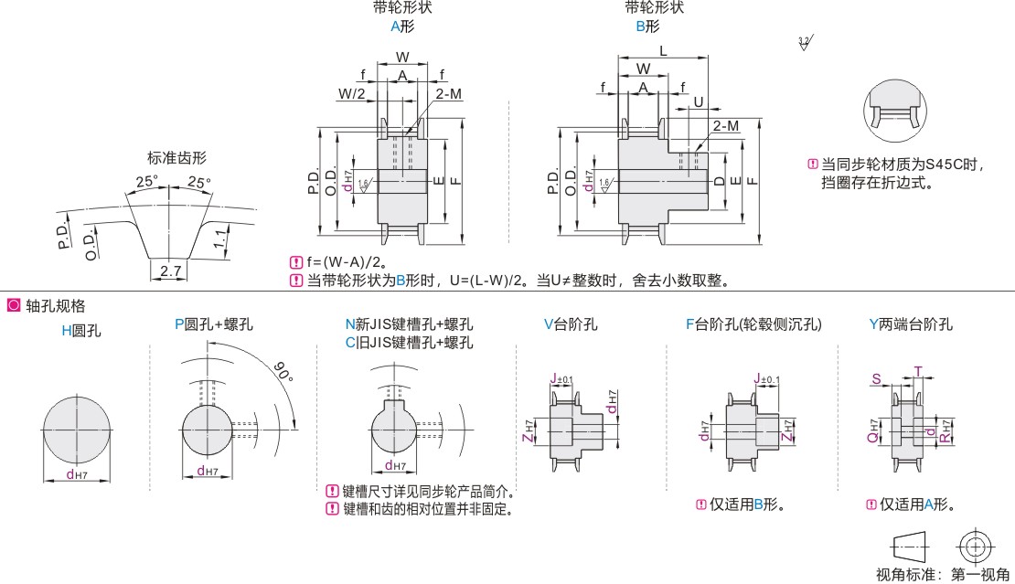 孔径6.35仅适用轴孔规格H、P、V、F。 *齿数18~60只适用于( )内L的尺寸。