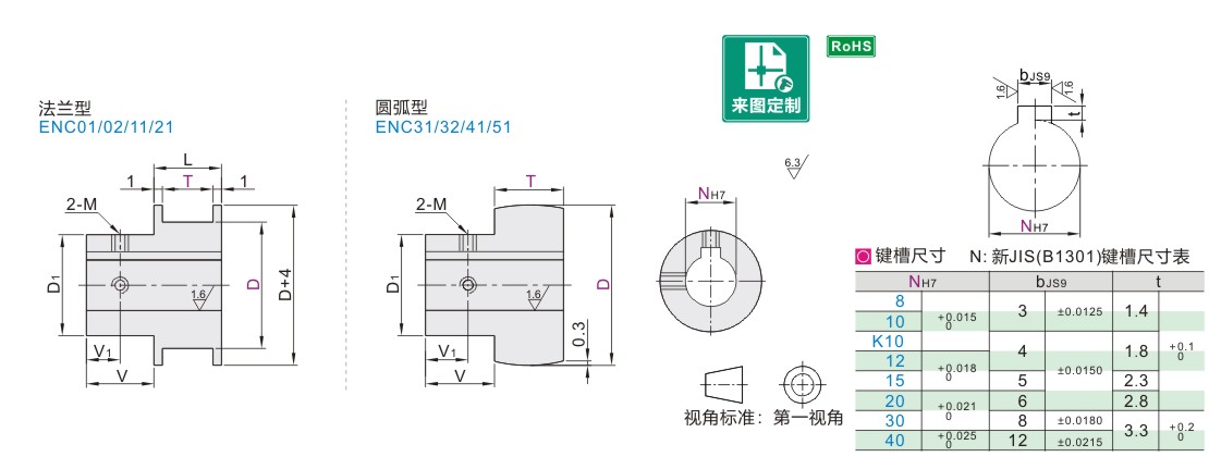 | 法兰型 ENC01 ENC02 ENC11 ENC21 圆弧型 ENC31 ENC32 ENC41 ENC51 |
