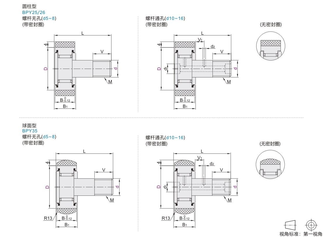 | BPY25 | 标准型 | 圆柱型 | 聚氨酯 | SUJ2 | 肖氏A90 | 80°C | 六角螺帽 |