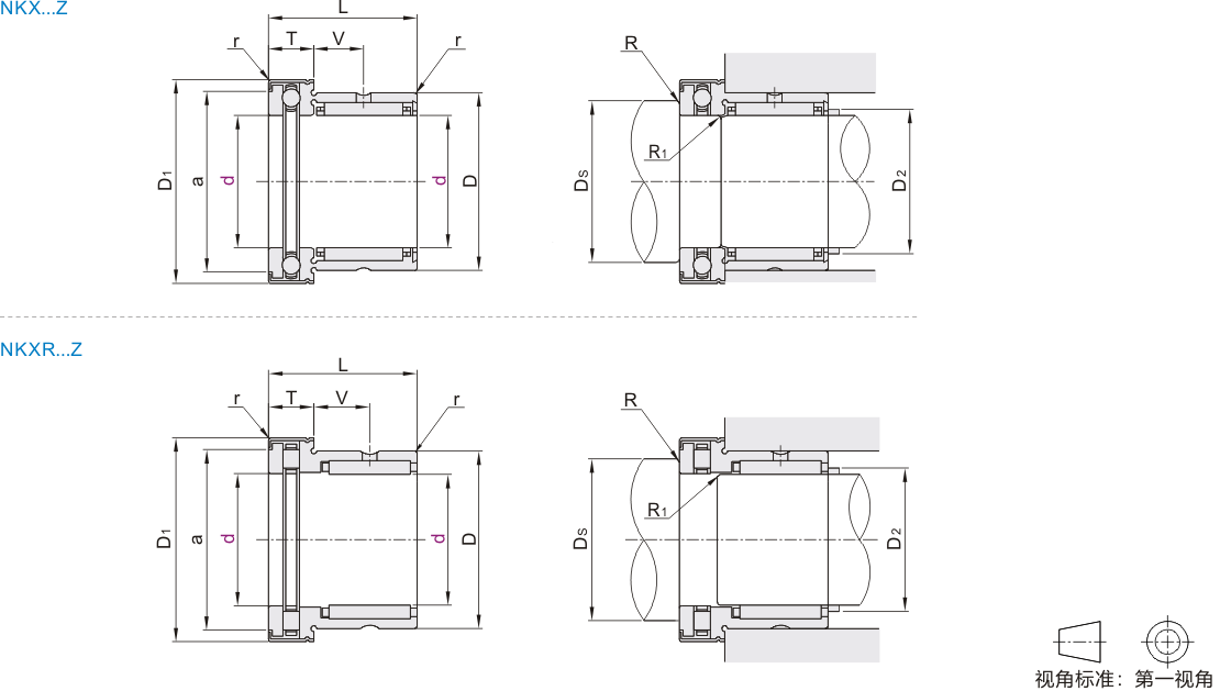 | NKXR…Z | 滚针和推力圆柱滚子组合 | ||||