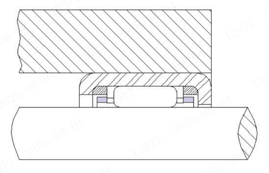 冲压外圈型滚针轴承的外圈是用过盈配合结实压入轴承座的,故无需固定轴向定位。安装例如图5.1所示。