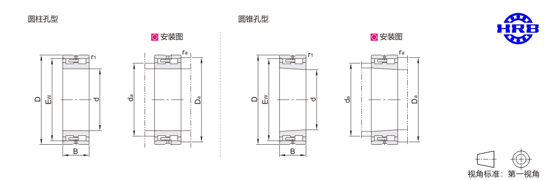 额定载荷(KN) | 极限转速(r/min) | 安装尺寸 | 重量(kg) 参考 |