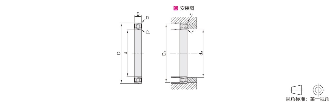 | 型号 | 主要尺寸(mm) | 基本额定载荷 | 极限转速(rpm) | 安装相关尺寸 | 重量 (g) 参考 |
