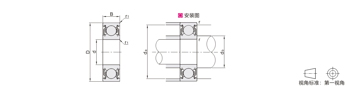 | d | D | B | r1(min) | Cr(动) | Cor(静) | db(max) | da(min) | r(max) | |||