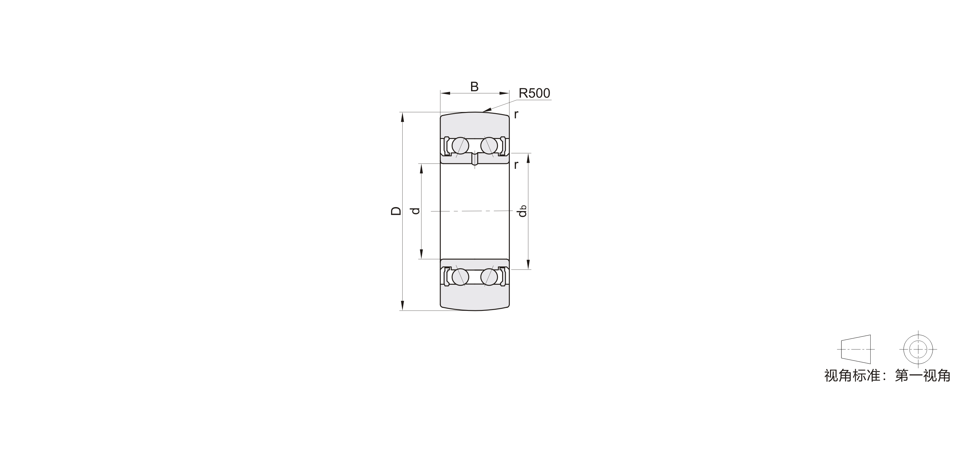 双列角接触球轴承 外圈为圆弧型 两面带橡胶密封圈(接触式)