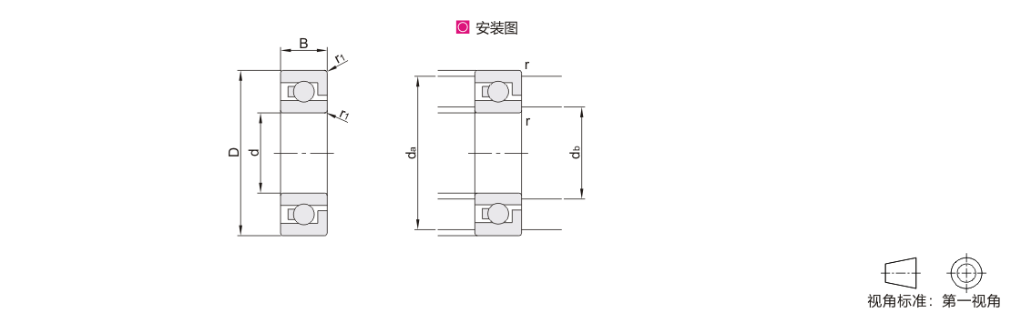 | 代码 | 轴承型号 | db(min) | da(max) | r(max) | BAX01 | BAX02 | BAX03 | ||||