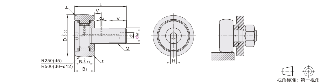进口型 凸轮轴承随动器 安装方式为内六角孔 内装止推钢球型
