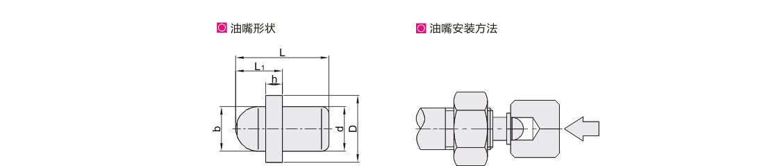 止动销用于防止油脂漏泄。但是BPC-d5、BPF-d5、BPH-d5、BPP-d10规格和BPC-d10、BPF-d10、BPH-d10、BPK(球面型)-d10或更低规格的带内六角孔中的型号中,不配备止动销。