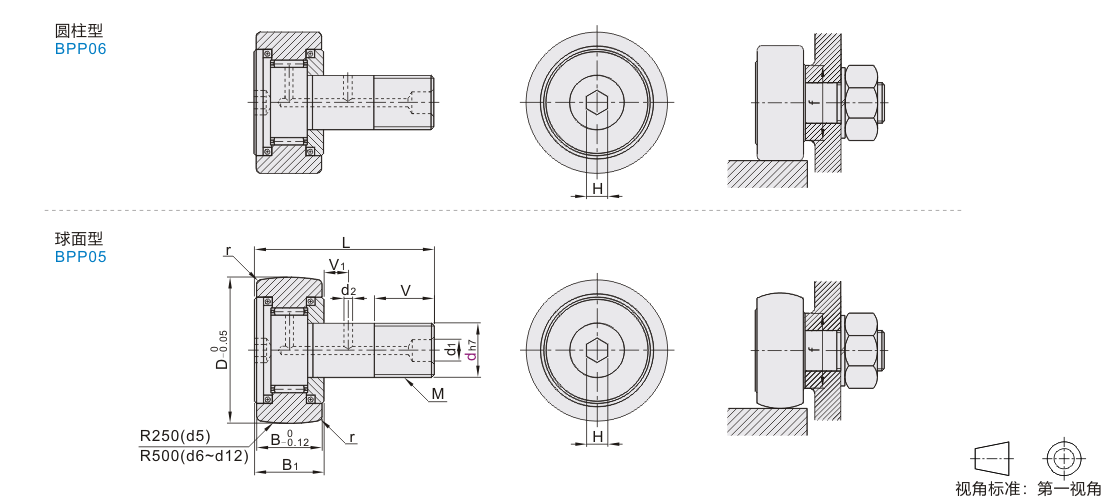 凸轮轴承随动器 安装方式为内六角孔 内装止推钢球型