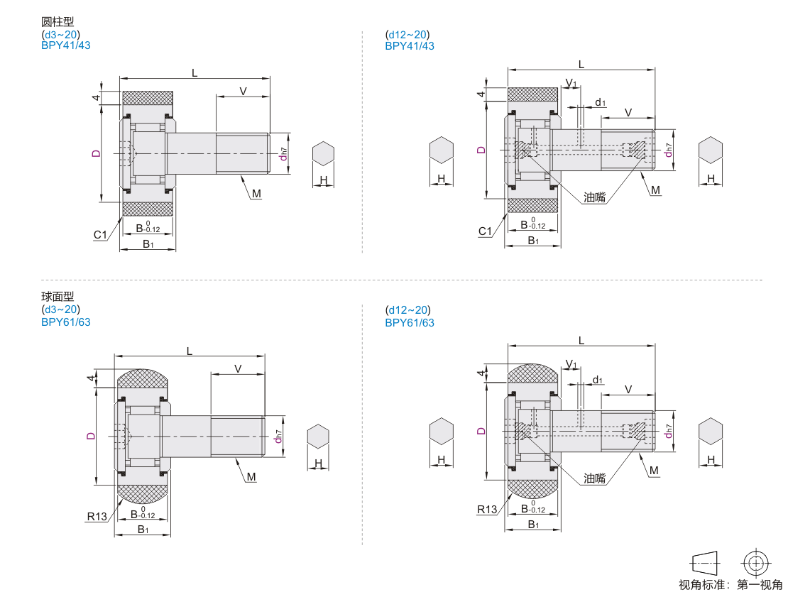 | BPY41 | 标准型 | 圆柱型 | 有 | 聚甲醛 | GCr15 | SUJ2 | 六角螺帽(S45C) |