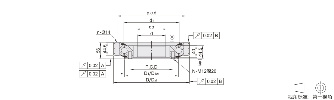 ①内部代号:产品类型代号,BEA表示回转支撑轴承外齿型,BNA表示内齿型
