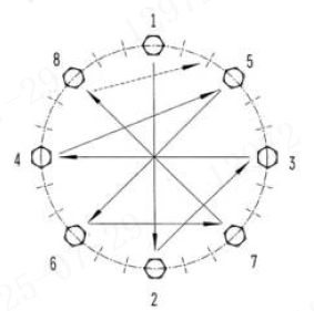 (2)拧紧螺栓应在180°方向对称的连续进行,最后通过一遍,保证圆周上的螺栓有相同的预紧力。