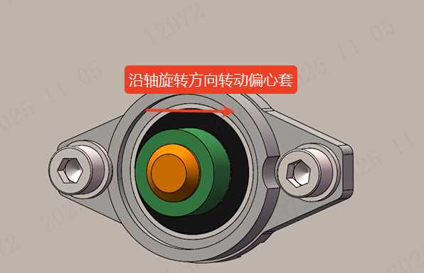 ③固定旋转轴,防止轴产生旋转,把偏行套放入对应位置,沿轴旋转方向转动偏心套。