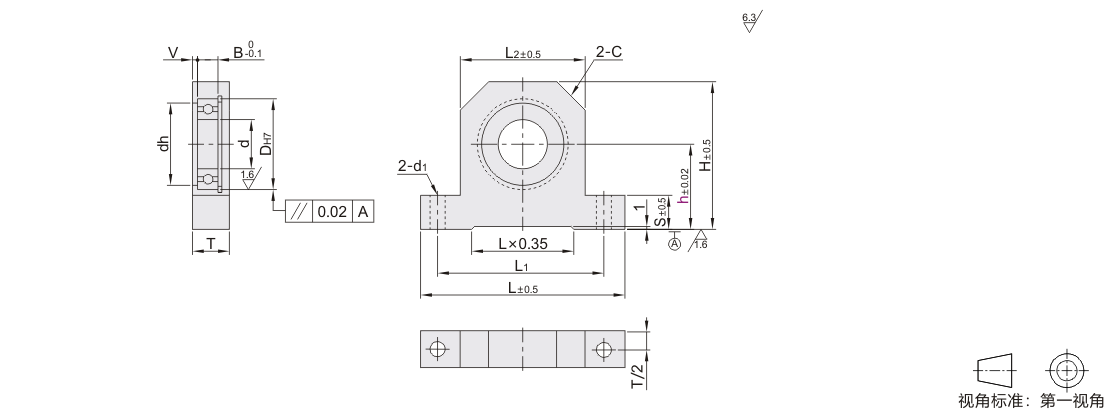 怡合达自营 带座轴承 轴承座组件 机加型 经济型 单轴承 T型 高度h选择倒角型
