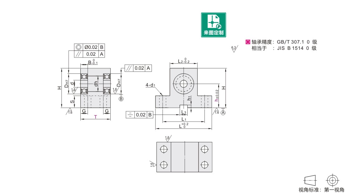 怡合达自营 带座轴承 轴承座组件 机加型 标准型 双轴承定位式T型 键槽型 高度h选择型/h指定型