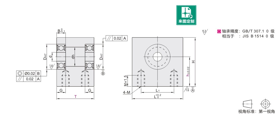 由于B尺寸为负公差 ,因此轴承可能会突出0.1~0.2。
