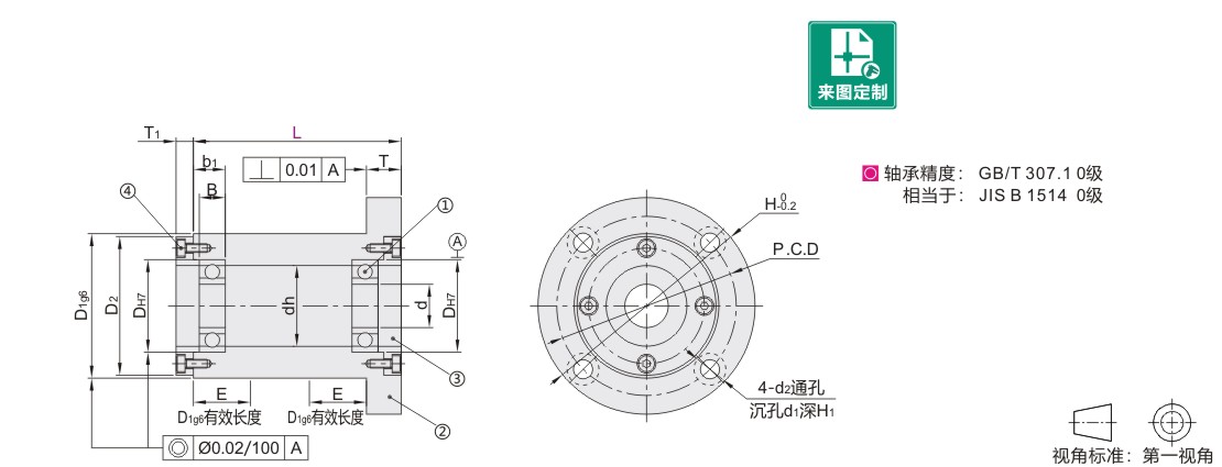 L尺寸带*规格,嵌入部外周进行了避让加工,D1g6的有效长度仅为E尺寸部分。