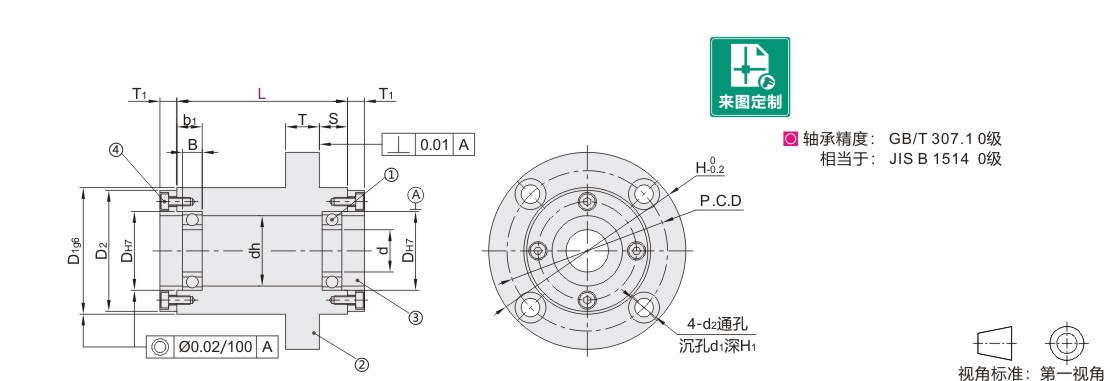 | 代码 | 类型 | ①轴承 | ②固定座 ③盖板 | ④盖板固定用螺丝 | ||