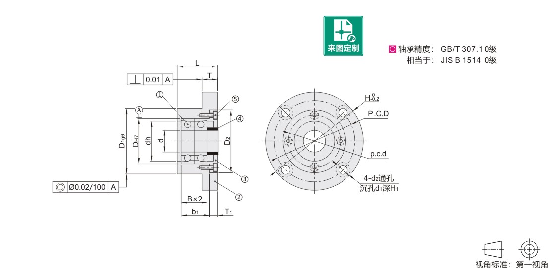 油封用盖板、O形圈用盖板时不附带④内圈固定环。