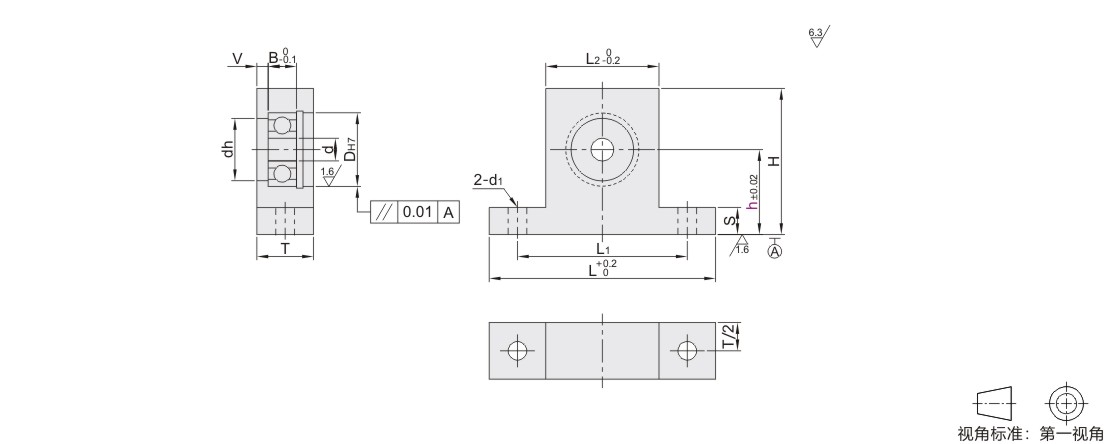 怡合达自营 带座轴承 轴承座组件 机加型 标准型 单轴承 低发尘用深沟球轴承 T型•单轴承