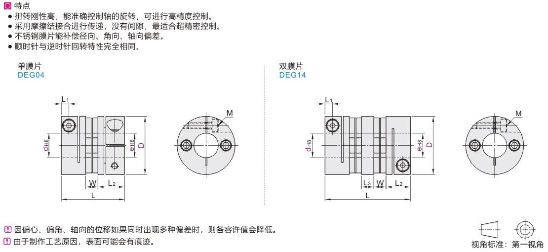 | DEG04 | 螺钉夹紧型 | 单膜片 | 铝合金 | 不锈钢 | 本色阳极氧化 | 内六角圆柱头螺钉 |