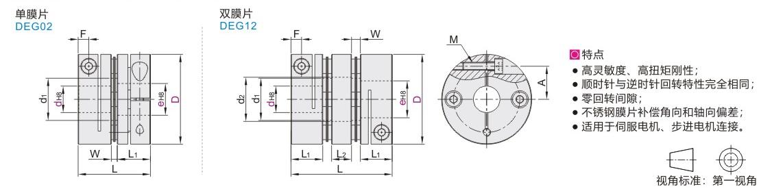 | DEG02 | 螺钉夹紧型 | 单膜片 | 铝合金 | 不锈钢 | 本色阳极氧化 | 内六角圆柱头螺钉 |