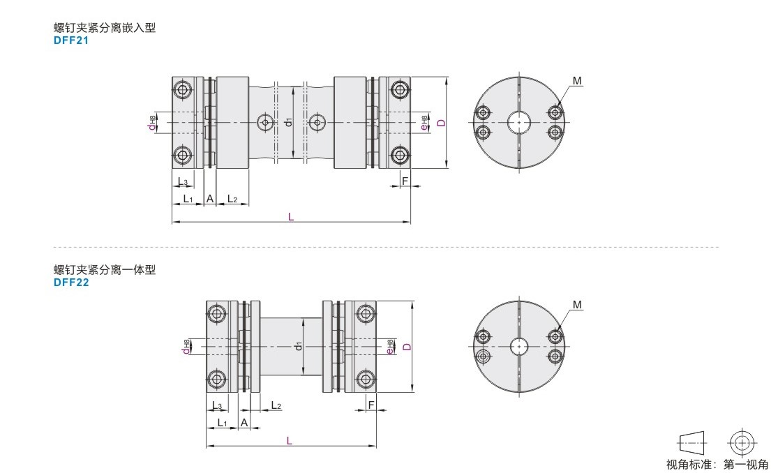DFF21 | 螺钉夹紧分离嵌入型 | 铝合金 | 不锈钢 | 黑色阳极氧化 | 内六角圆柱头螺钉 |